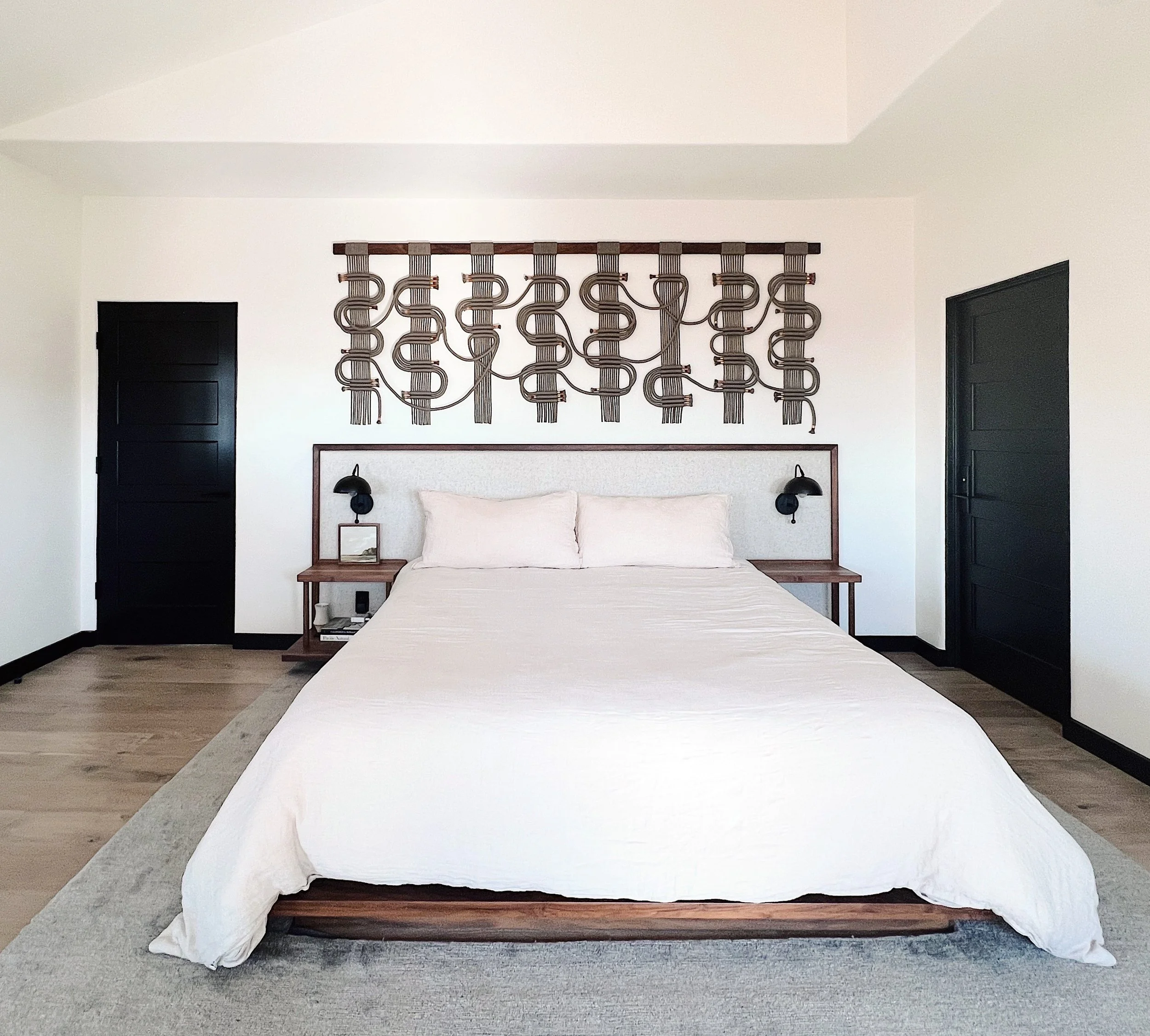 I love collaborating with my collectors on commissioned works. I exclusively use Sunbrella cordage which is custom made to my specifications and is water- and UV-resistant, has a luxe hand similar to wool, is easily cleaned & maintained, and comes in a rainbow of color options.